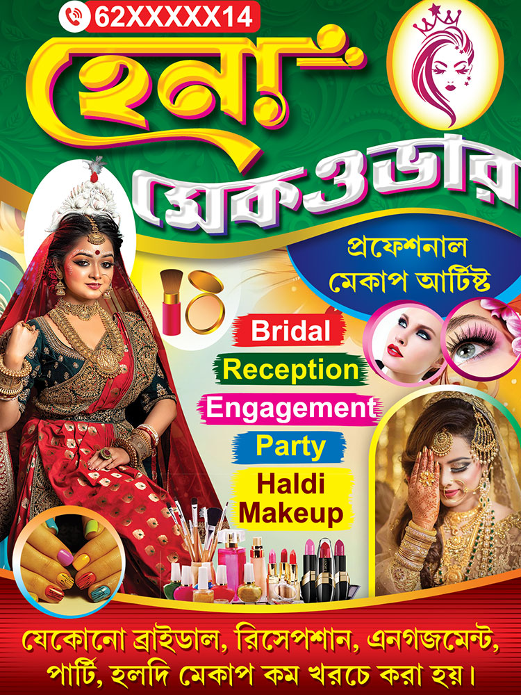 Beauty Parlour Bridal Makeup Makeover Shop Banner Design PSD 1.5×2 ft_1294 – PMC