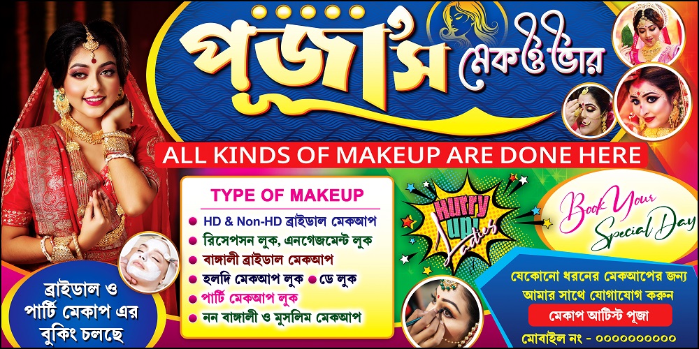 Beauty Parlour Bridal Makeup Makeover Shop Banner Design PSD 6×3 ft_1321 – PMC