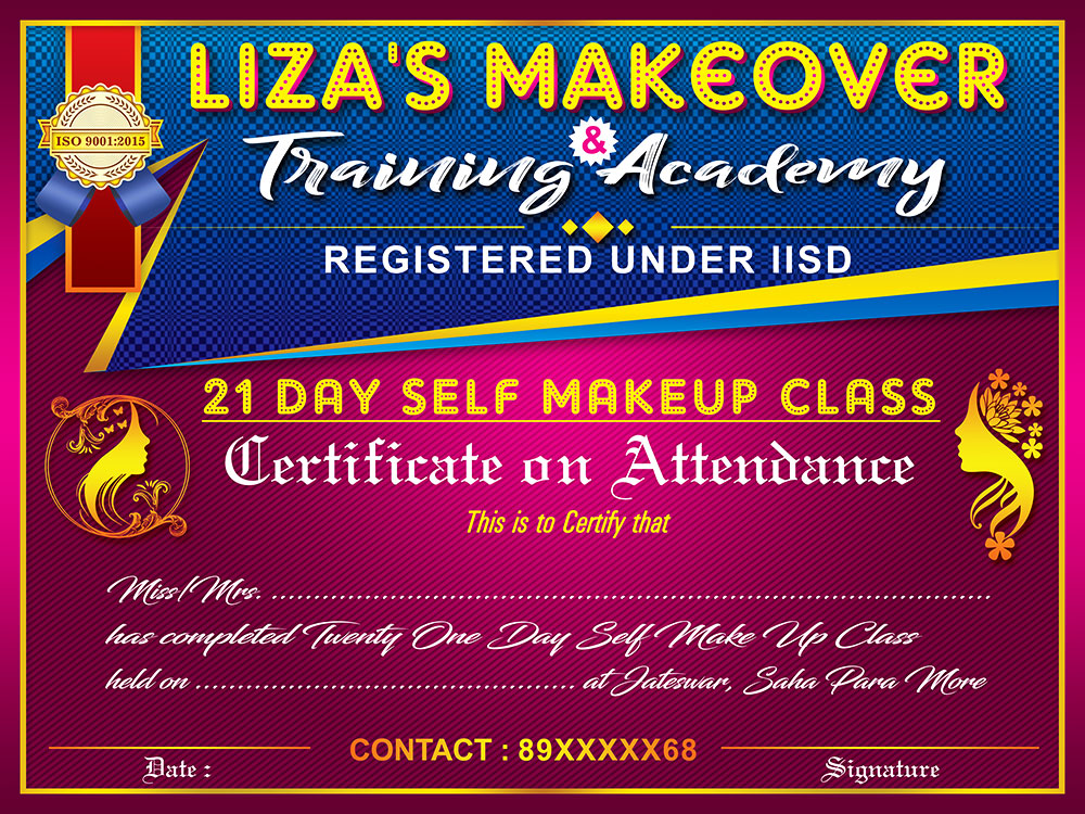 Beauty Parlour Bridal Makeup Makeover Shop Certificate Design PSD 12×9 Inch_1323 – PMC