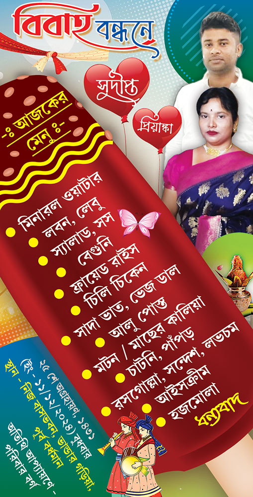 Bengali Bibaha Wedding New Style Hand Table Stand Menu Card Design PSD 2.8x 5.5 Inch_2314 – PMC