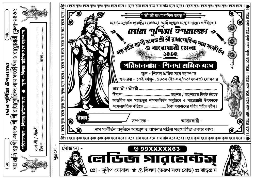 Dol Purnima 8 16 24 Prahar Radha Krishna Kirtan Srimad Bhagavad Gita Katha Path Mahotsob Naam Jagya Offset Black & White Bill Book Design PSD A4_2384 – PMC