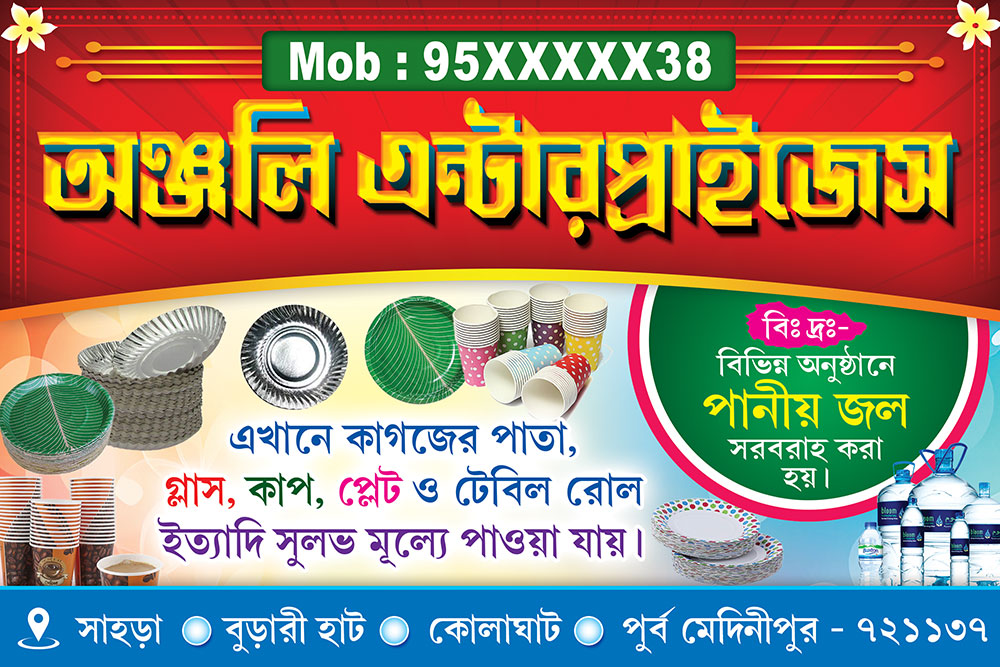 Pata Bason Plastic Paper Disposable Cup Glass Thala Plate Shop Banner Design PSD 3×2 ft_2167 – PMC