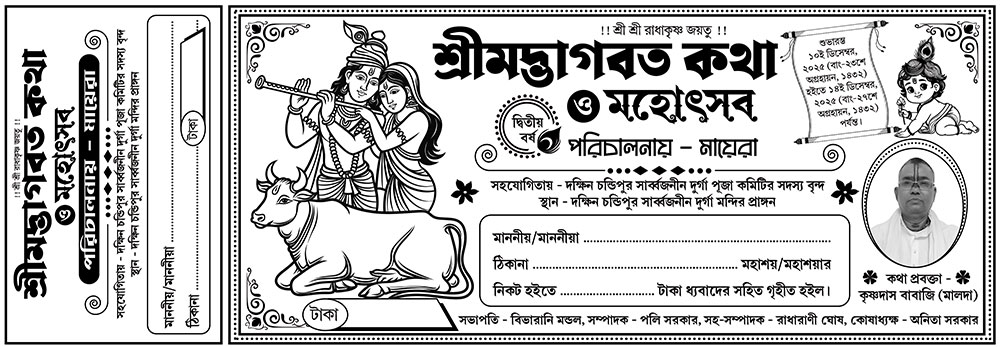 Radha Krishna Srimad Bhagavad Gita Katha O Mahotsob Offset Black & White Bill Book Design PSD 11.5×4 Inch_2356 – PMC