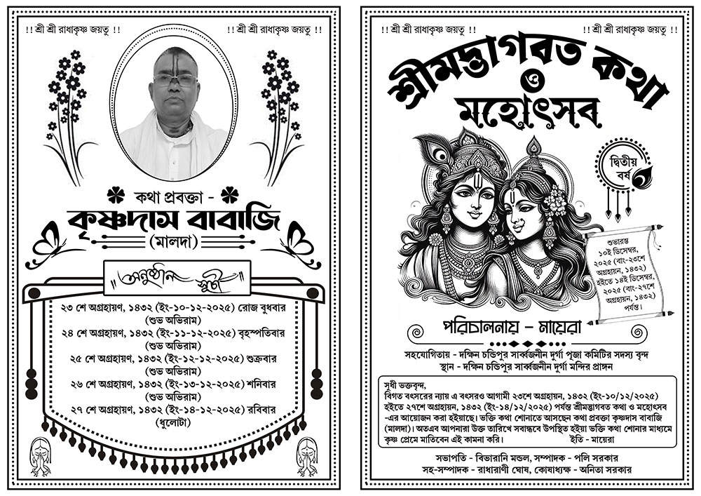 Radha Krishna Srimad Bhagavad Gita Katha O Mahotsob Offset Black & White Invite Handbill Card Design PSD A4_2357 – PMC
