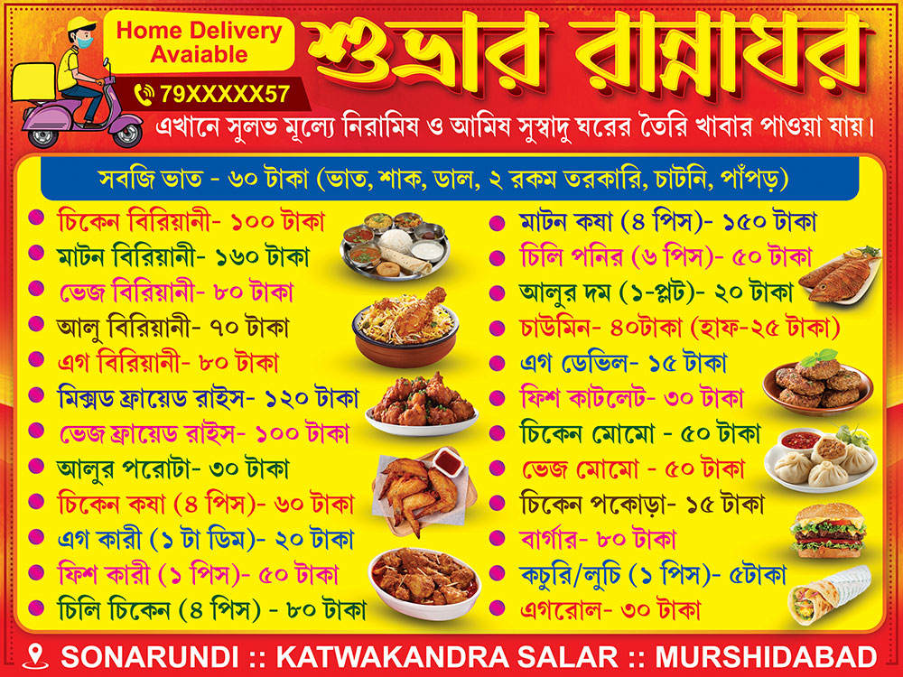 Restaurant Hotel Fast Food Dhaba Cum Bar Guest House Caterar Biryani Shop Banner Design PSD 2×2.5 ft_0318 – PMC