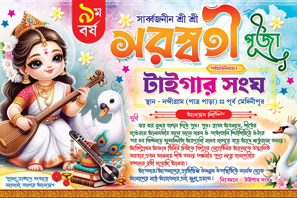 Saraswati Basant Panchami Puja Invite Card Design PSD 9×6 Inch_2306 – PMC