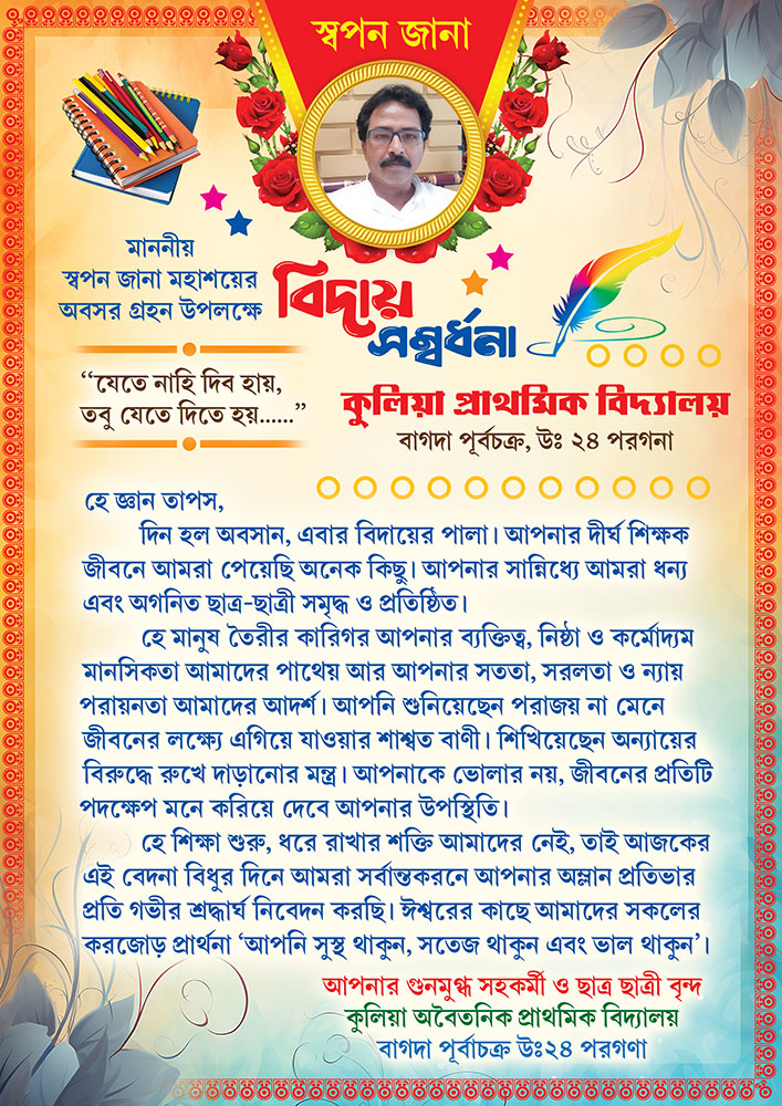 School Teacher Maan Patra Biday Songbordona Sambardhana Sanman Invite Card Design PSD A4_2411 – PMC
