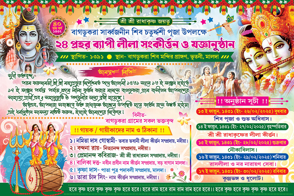 Shib Chaturdashi Puja 8 16 24 Prahar Radha Krishna Kirtan Srimad Bhagavad Gita Katha Path Mahotsob Naam Jagya Invite Card Design PSD 9×6 Inch_2385 – PMC
