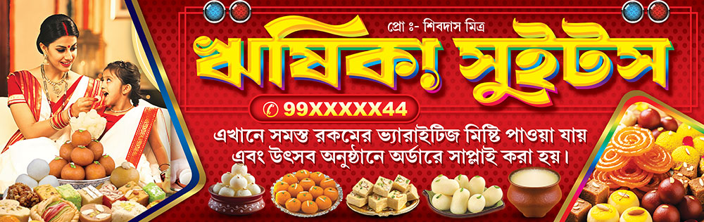 Sweet Mishtanna Bhandar Shop Banner Design PSD 9.5×3 ft_2119 – PMC